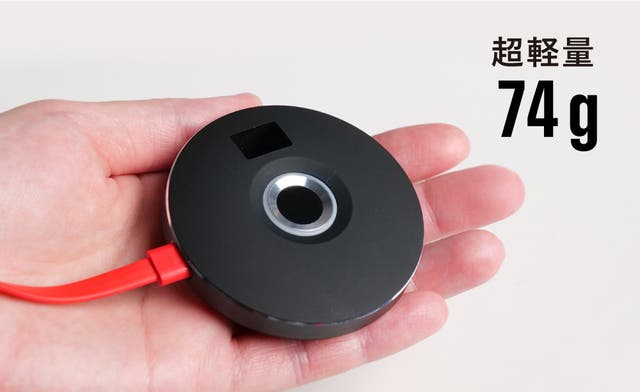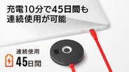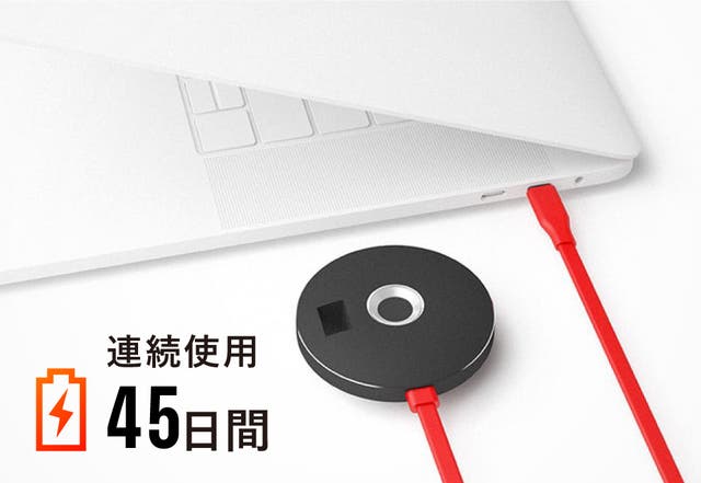 - バッグに入れて邪魔にならない手のひらサイズの軽量設計。充電式で最大45日間連続使用が可能