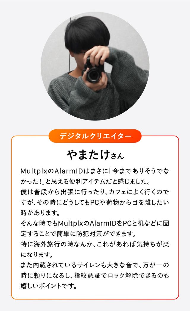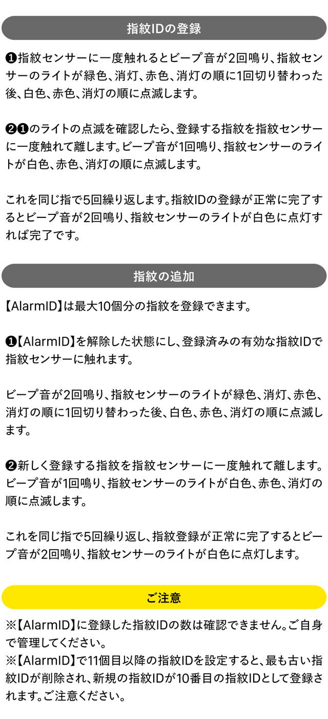 合鍵やダイヤル式のワイヤーロックとは異なり、【AlarmID】は指紋認証とサイレンを使ったロックシステムです。