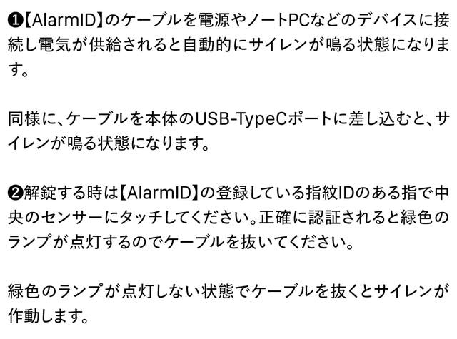 また【AlarmID】は本体にバッテリーとUSB-TypeCポートを搭載。