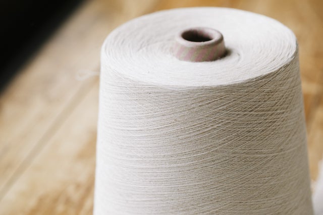 茶綿を混紡した糸はほのかな生成り色に出来上がります。