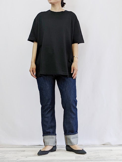 身幅にはゆとりを持たせ、着丈と袖はやや短めに設定した女性らしいシルエットに仕上げました。