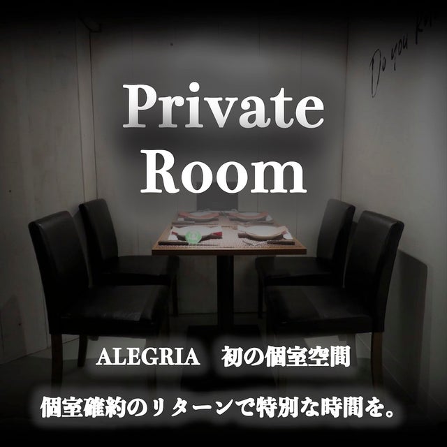 ALEGRIAでは初めてのプライベートルーム(個室)も完備しております。