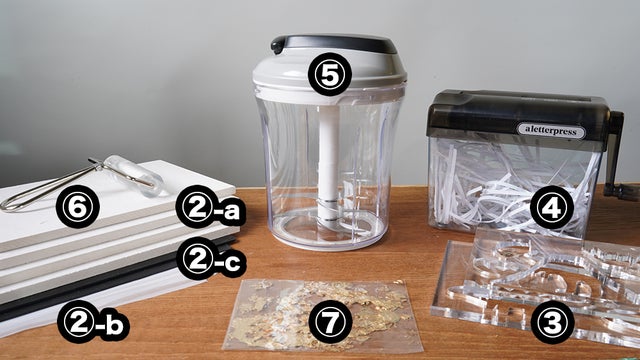 ⑤手動ミキサー|手作りジュースを作るように紙を再生パルプに。リサイクルの重要な役割を担います。