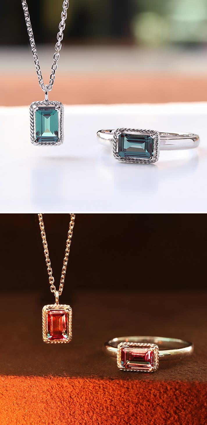 - 【光で色が変わる不思議な宝石】 昼はフォレストグリーン、夜はバーガンディレッドの変色効果