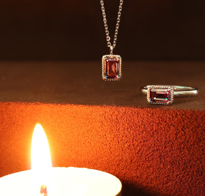 今回、皆様にご提案するのは、光の魔法を宿した特別な宝石「アレキサンドライト」を使用したジュエリーです。これまで出会ったことのないような、驚きと感動に満ちた輝きを、ぜひご体験ください。