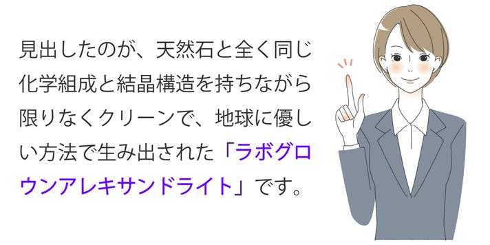 ラボグロウンアレキサンドライトは、天然石が遥かな時間をかけて育まれる神秘のプロセスを、高度な技術を持つ専門ラボで開発した合成アレキサンドライトです。