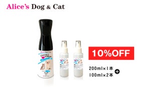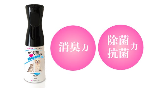 Alice’s Dog & Cat のイヌネコ トイレ専用 消臭除菌スプレーは、無香料でペットが舐めても安全なのはもちろんのこと、強力な消臭・除菌力を持った今までにない消臭・除菌スプレーです。