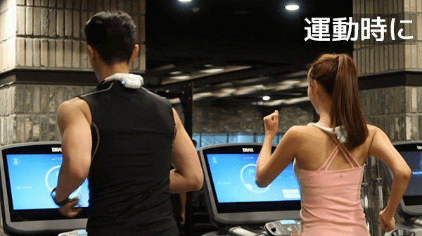 左:ALL7着用後、本体を後ろ首に回した状態 / 右:オールセブン着用後、シャツの中に入れた状態 + 本体方向を180度下にしたとき(お腹の方向)
