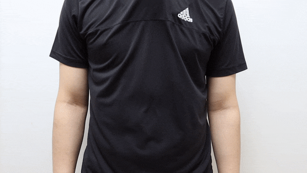 * ALL7着用後、Tシャツの中に入れた状態 + 本体方向を180度下にしたとき(船方向/3段から撮影)