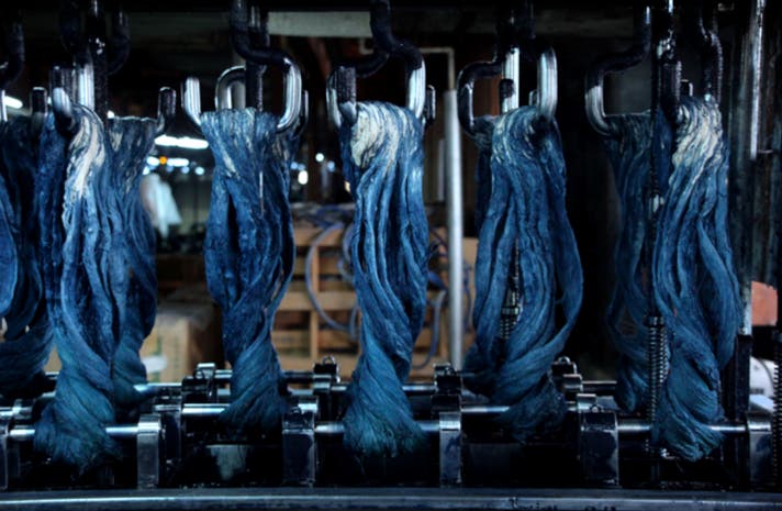 藍の葉からとった染料を発酵建て染めるのが特徴で、糸染の生地を使用します。