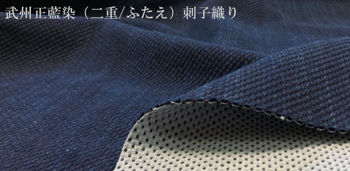 その中でもブランド藍染である武州正藍染刺子(ぶしゅうしょうあいぞめさしこ)生地を使用しております。