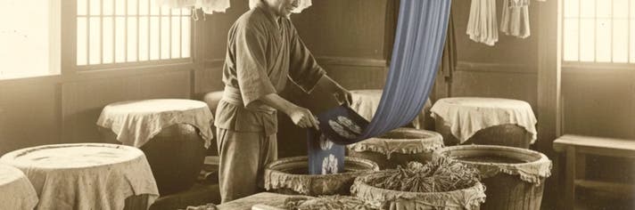 武州正藍染の歴史は、江戸時代後半の天明年間(1781~1789年)にさかのぼります。埼玉県羽生市、加須市、行田市など北埼玉で藍が栽培され、農家の主婦が農閑期に衣服を染めていました。