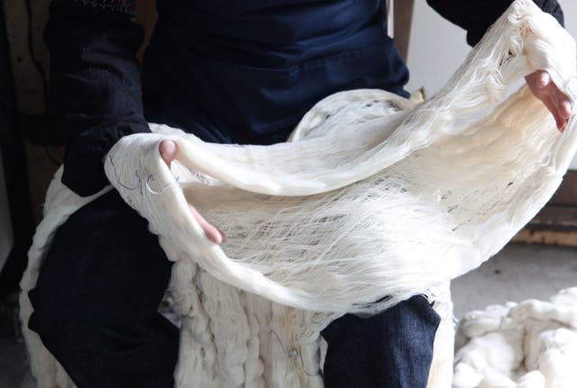 そこから織られた生地は、独特の風合い、存在感を放ちます。