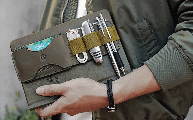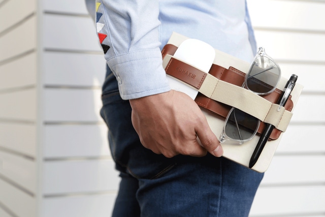 私たちは、PCと一緒に仕事の必需品をコンパクトかつスタイリッシュに持ち運べるレザーバンドをご紹介します。