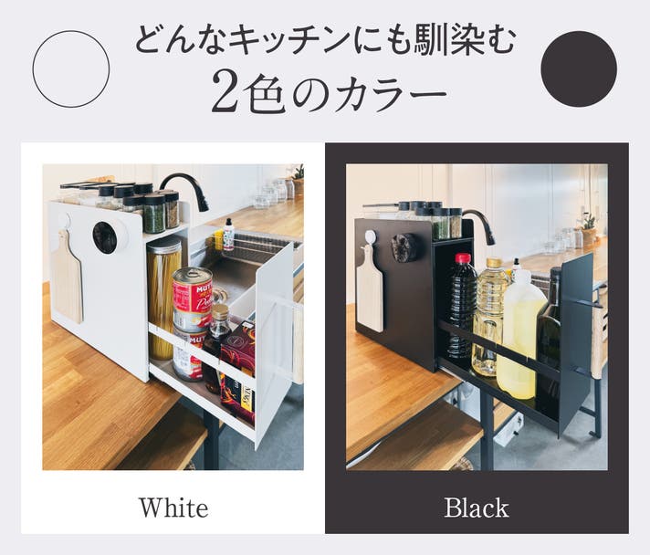 キッチンの雰囲気やお好みに合わせてお選びいただけるよう、清潔感あふれるホワイトと、空間を引き締めるスタイリッシュなブラックの2色をご用意しました。ホワイトは明るく開放感のあるキッチンづくりに、ブラックは落ち着きと高級感を演出したい方におすすめ。インテリアや他の調理器具ともコーディネートしやすく、色を選ぶだけでキッチン全体の印象がぐっと引き締まります。