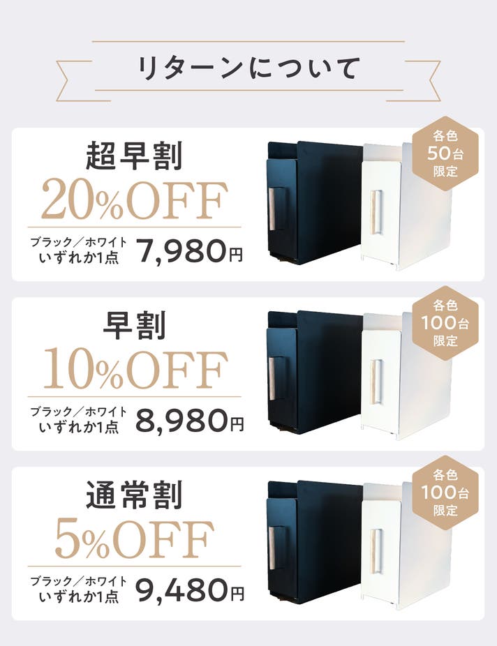 【早割10%OFF 各色100台限定】