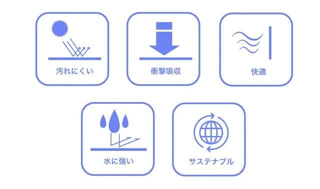 ✔︎ 廃棄物であるリサイクルゴムを使用しており、弾力性を高めると同時にエコである