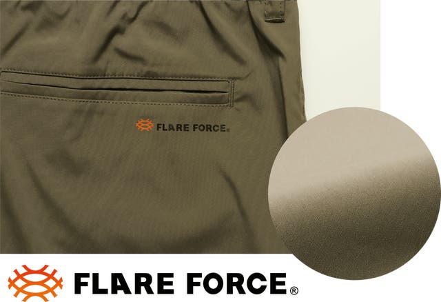 太陽光エネルギーを吸収して蓄え、熱エネルギーに変換する機能素材が、表地に使用しているFLARE FORCE®︎です。表面に照射された近赤外線を繊維内に取り込み、約5.10分で約10℃の温度上昇を達成することが確認されています。また撥水性・UVカットなどの機能も備えています。