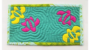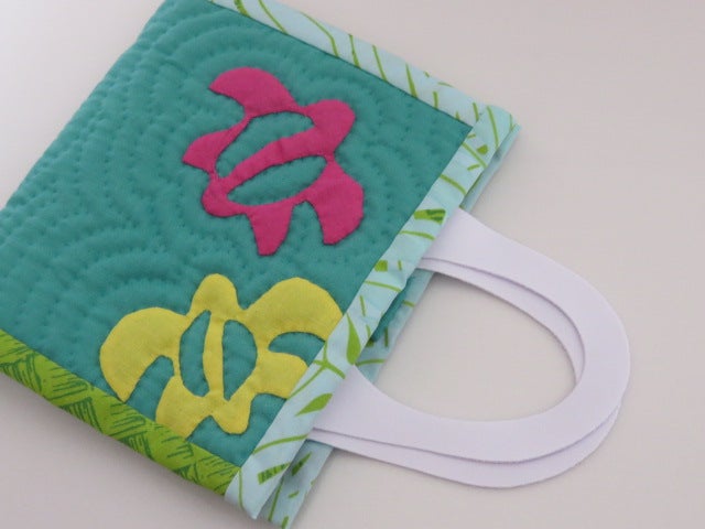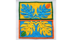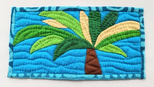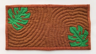 一般的なハワイアンキルト製品の作り方とは違って型紙は一切使用せずに、布に直接モチーフを描くスタイルとなっています。ですので同じ製品は全くありません。