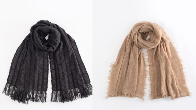 しっかりとした生地の厚みがありながら軽量で暖かく滑らかで自然なツヤと光沢が特徴です。シンプルなデザインながら素材を活かした機能性と上品さを併せ持つ優れものです。大判のストールなため肩からかけたりマフラーのように首に巻いたりとコーディネートも多彩に楽しめます。