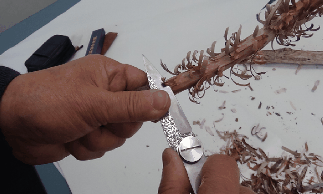 初めてのフェザースティックできました。薄刃だと綺麗に削れます、通常のナイフとの差を感じました。たった1ミリの差(?)、されど、切ったら実感!!薄く削れます。