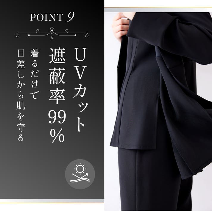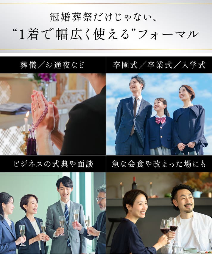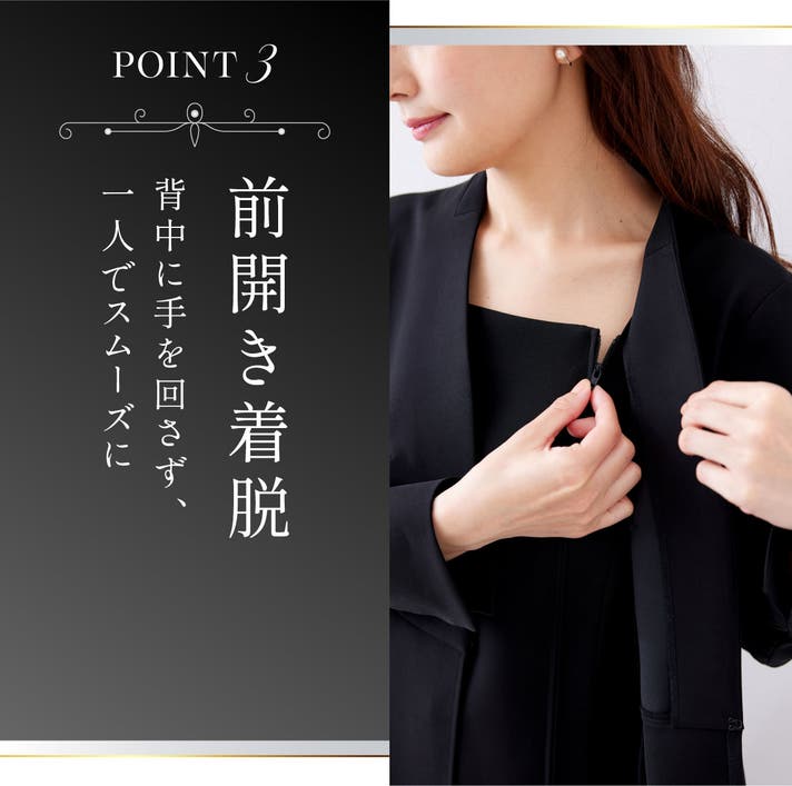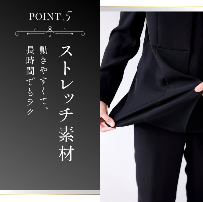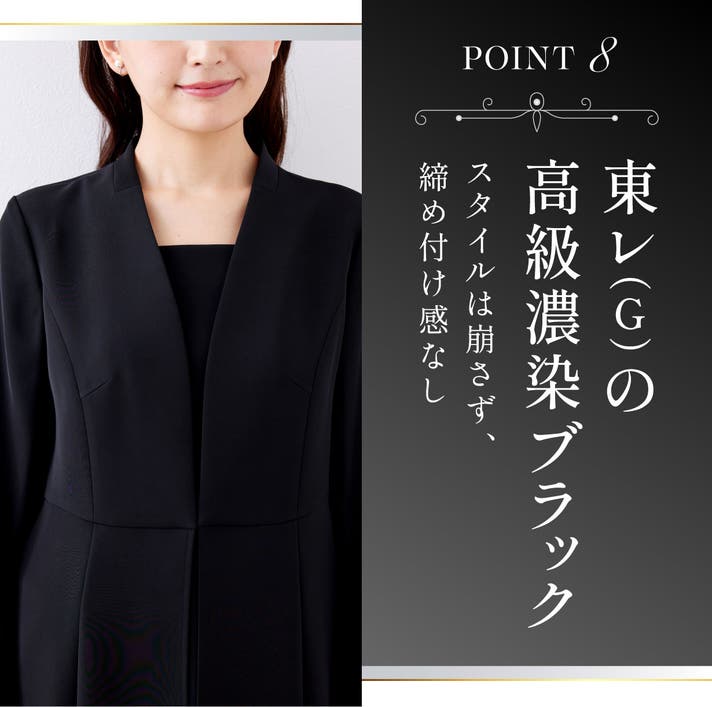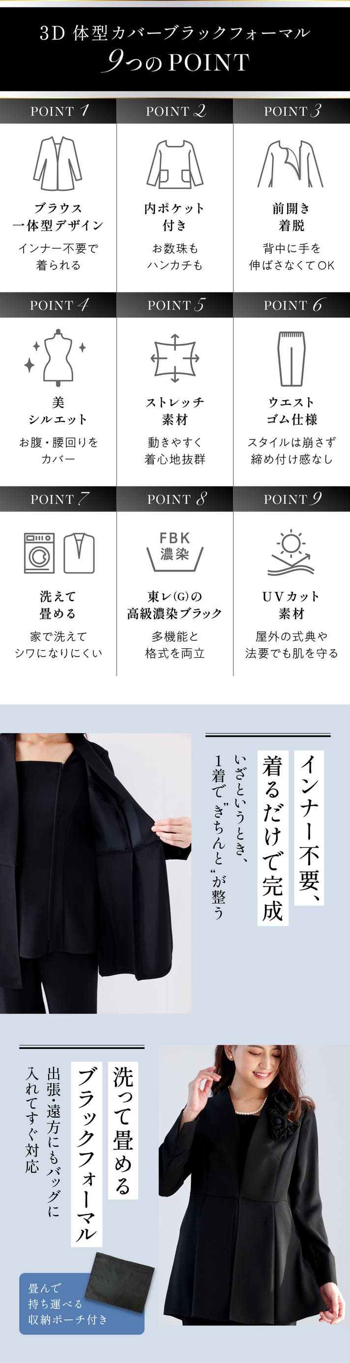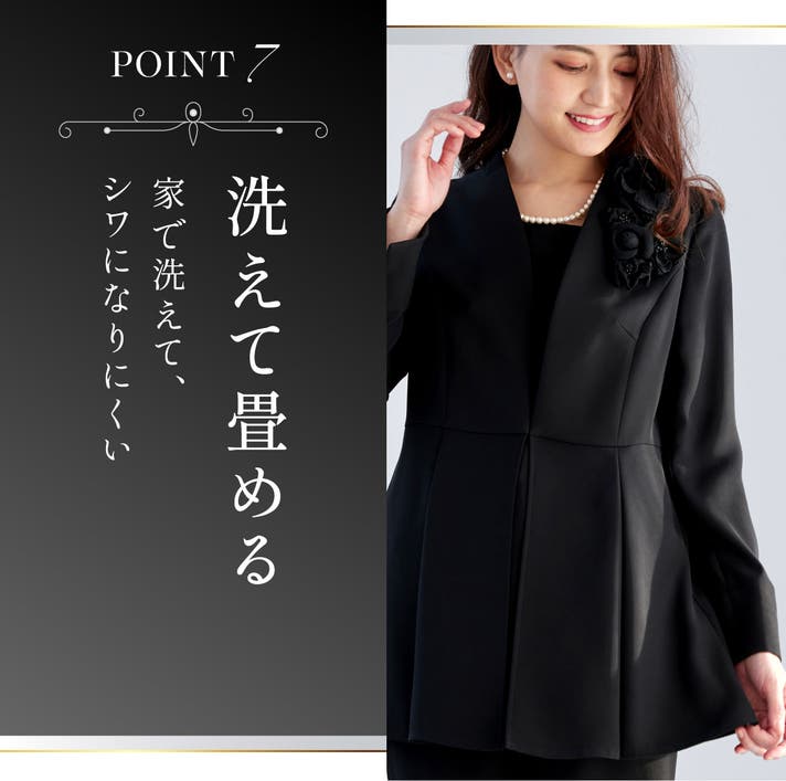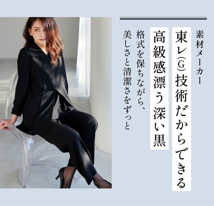 - 東レ(G)製の高品質生地を使用し洗濯機で丸洗いOK。高級感と実用性を両立したブラックフォーマル