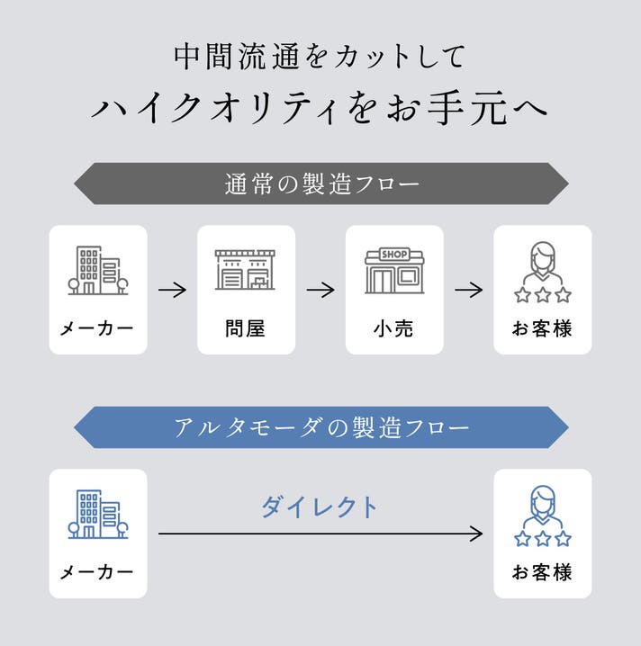 一方で、流通のマージンや販売コストを大幅に下げ、百貨店のブランドスーツの半額以下の価格で、それ以上の品質を実現させました。
