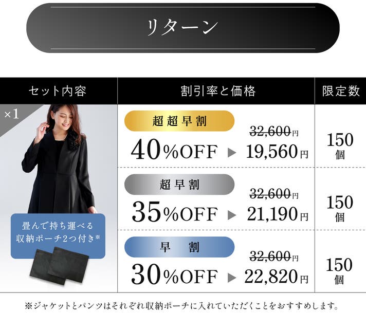 【超早割 限定150着】3Dブラックフォーマル 35%OFF