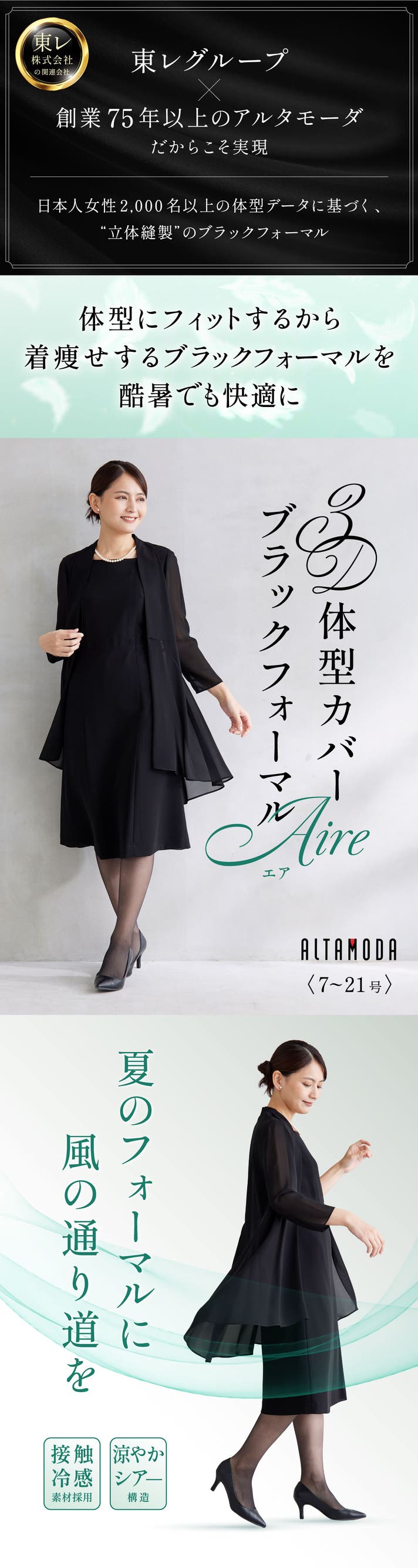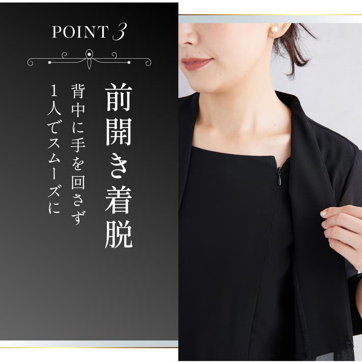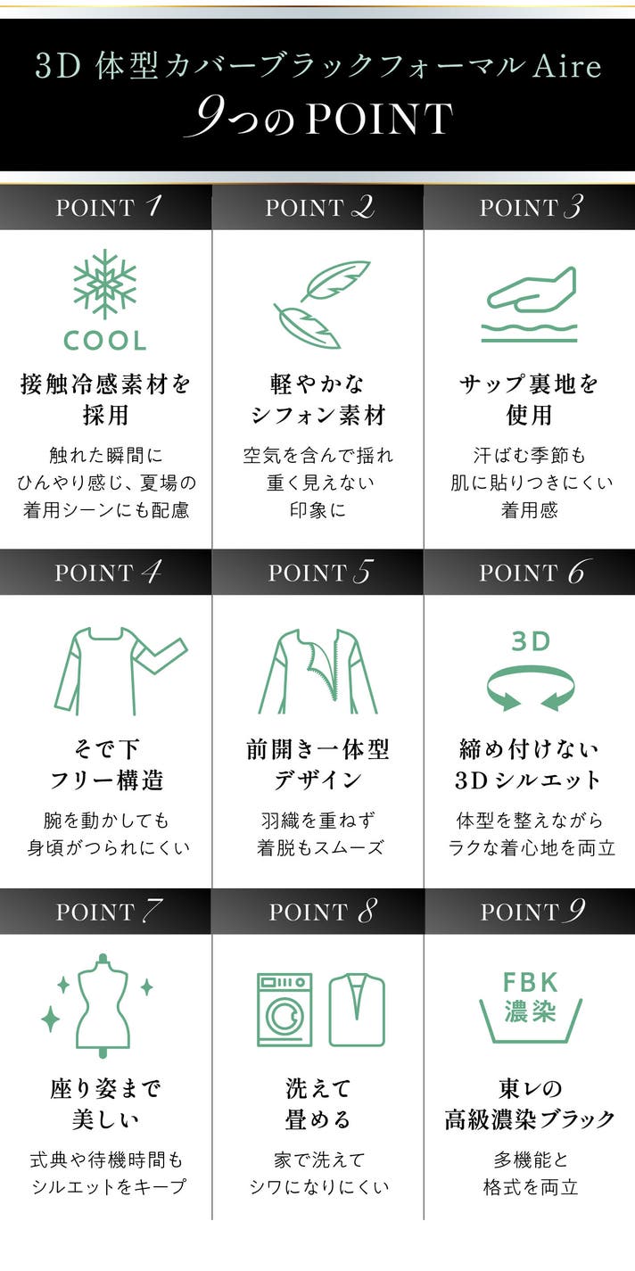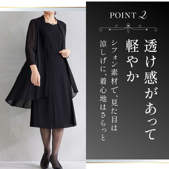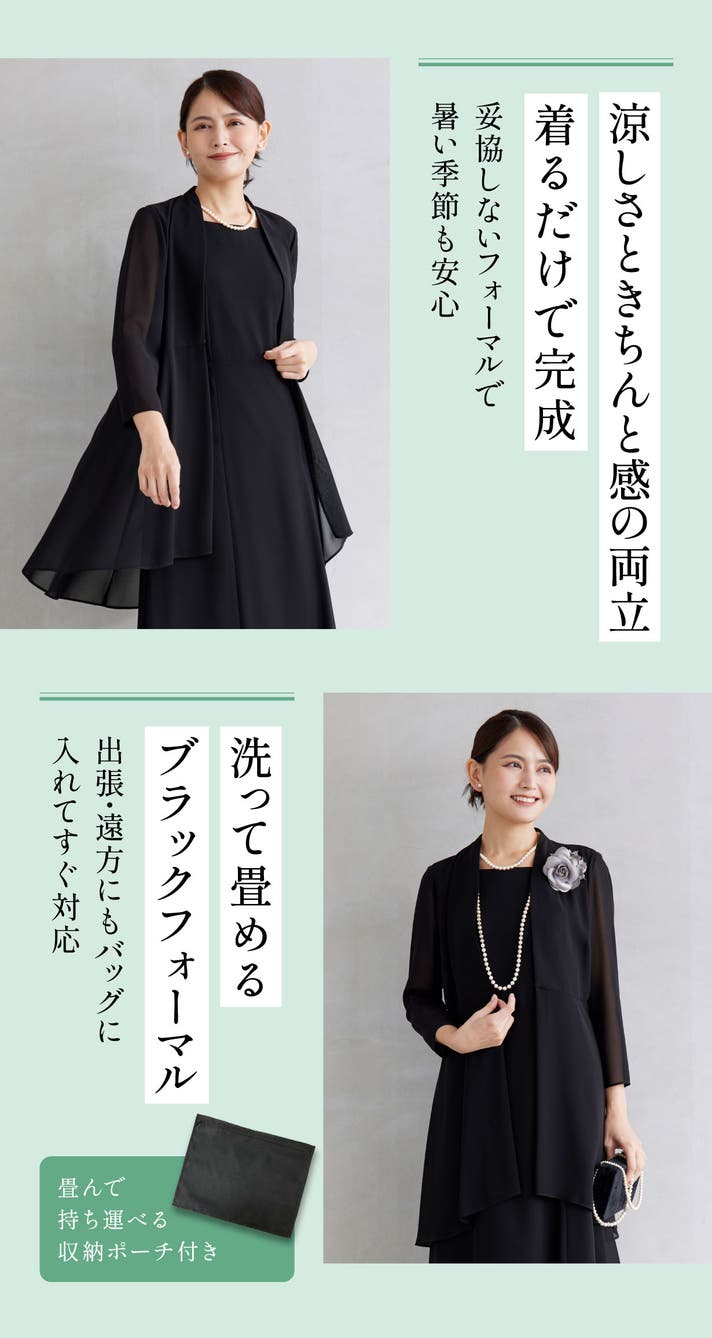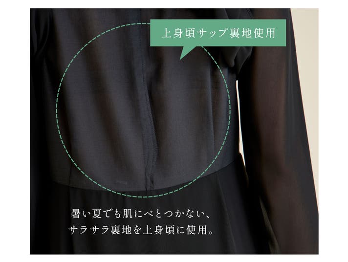 - 【風を通す素材×接触冷感生地採用】肌を隠しても、涼やか。 夏でも快適なブラックフォーマル