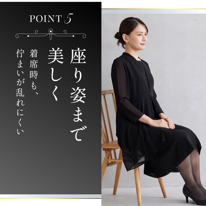 透け感のあるシフォン素材が、黒でも重たく見せません。