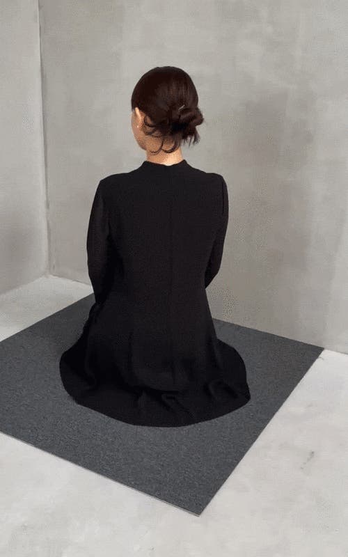 椅子に腰かけたり正座のシーンでもオーバー身頃がつま先からお腹まですっぽりと覆い隠してくれます。