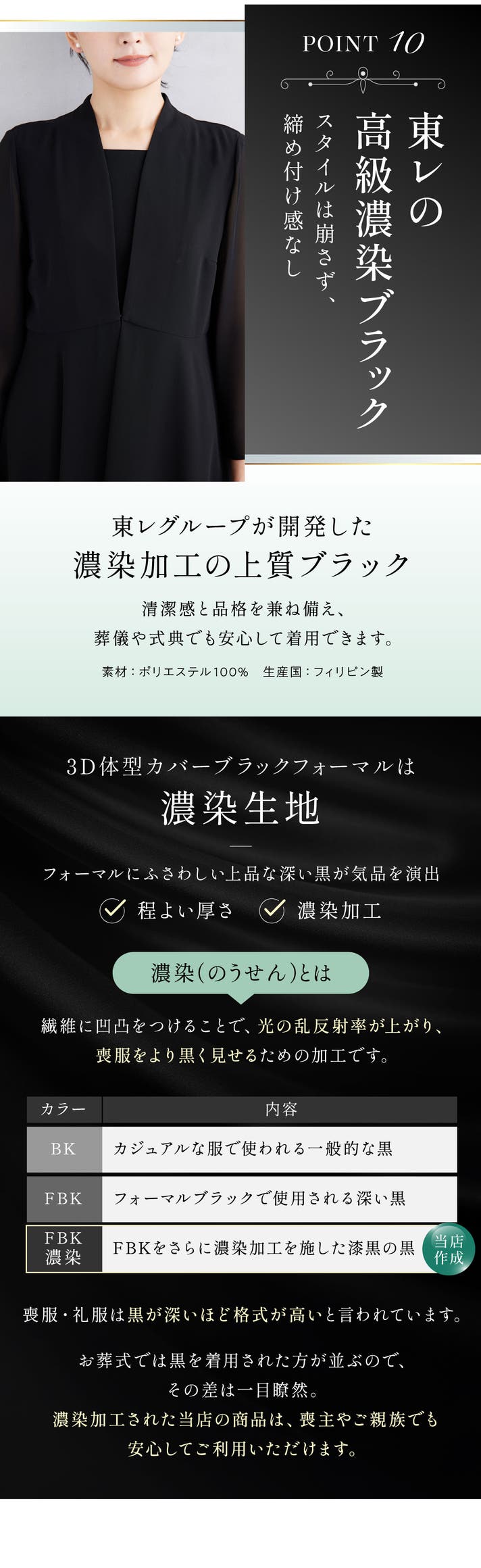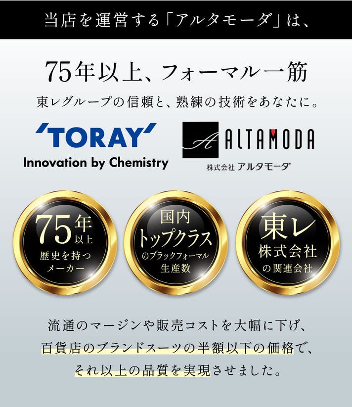 創業75年以上、ブラックフォーマル一筋で、 “着やすく、美しく、安心して着られる一着”を追求し続けてきました。