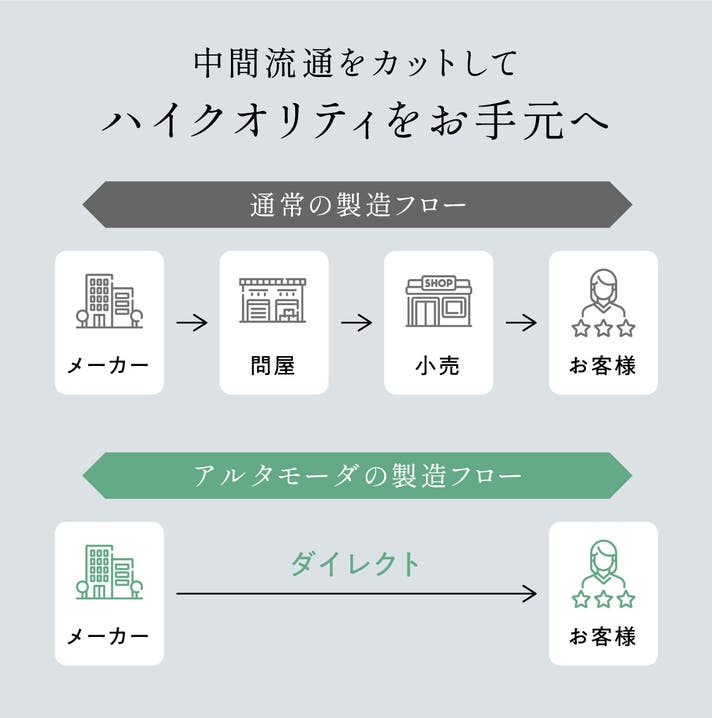 一方で、流通のマージンや販売コストを大幅に下げ、百貨店のブランドスーツの半額以下の価格で、それ以上の品質を実現させました。