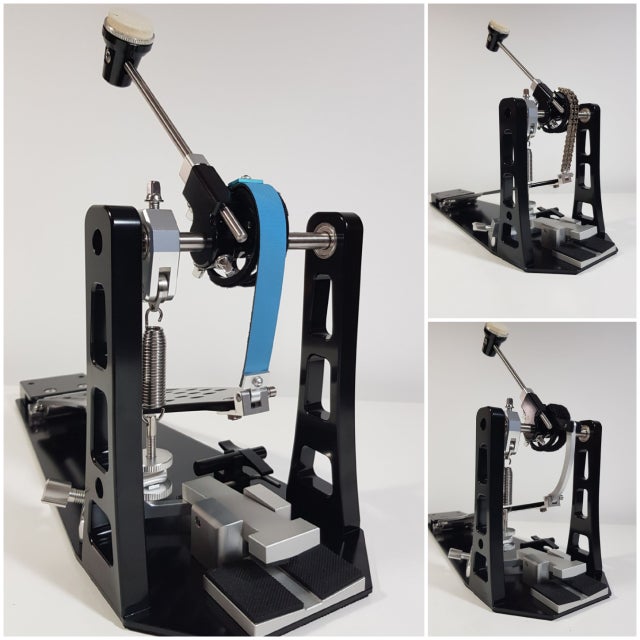 趣味でドラムを叩きながらペダルを各タイプ別に別々に購入することに不便を感じ、3タイプを一気に使えるようにしてみようと思い、開発することになりました。