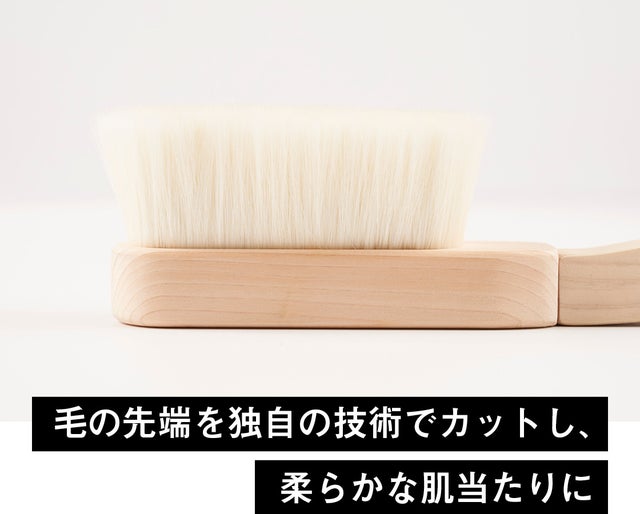 - スッキリとした洗い心地と柔らかな肌あたりを兼備する混毛ブラシ