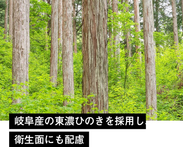 - ブラシを衛生的に保つ、東濃ひのきを採用