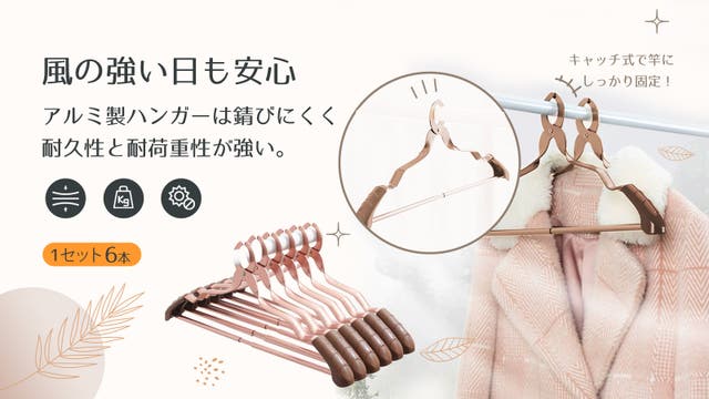 アルミハンガーは丈夫耐用、滑り止めPVCコーティングをして、防錆効果もあります。
