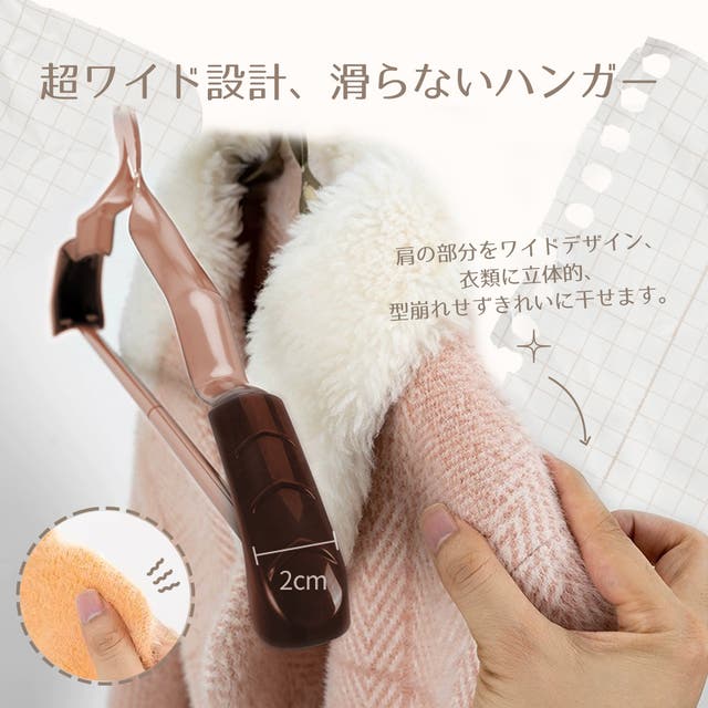 幅約 2 cmこの幅があるとしっかり綺麗に干せ、洗濯物の型崩れを防ぎます。