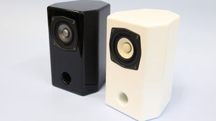 この経験から形状などを見直して単なる四角柱などではなく、面を分割して多角形にしたデザインに変更。スピーカーユニットも高音用と低音用などに分けるマルチユニットではなくフルレンジ単体にする事で、ユニット同士の振動によるノイズを無くすなどの改良を積み重ねることで、木製ではなかなか出せない繊細で焦点の合った音色を実現しました。