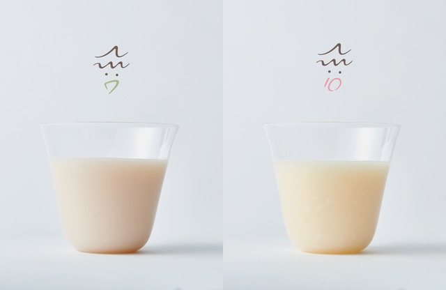 毎朝飲んでいただきたい甘酒。飲み飽きないよう、2つのスタイルを用意しました。飲み物の“スタイル”と言われると、ちょっとピンと来ないかもしれませんが、他に言いようがないのです。味わいや食感はしっかり違うのですが、味付け自体は同じなので“テイスト”や“フレーバー”とは言えないのです。では何を変えたのか? それは、お米の粒感です。