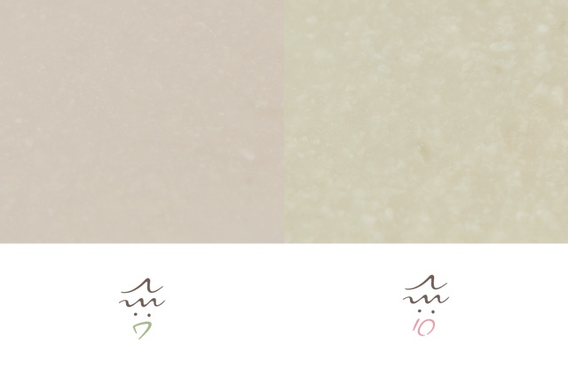「AM7」はお米の粒があまり目立ちません。細かな粒子が光を通さないため、若干暗めの色に見えます。