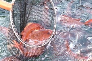 いけすで泳いでる真鯛を活締め手早くさばきます