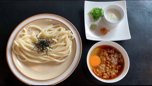【食材:中粒、うどん、とろろ、梅肉、わさび、ネギ、刻み海苔】