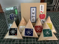 当店のレギュラーメニューである5種の納豆に加え、マクアケ限定で丹波黒豆の中でも最上ランクである「飛切」を使用した納豆と、納豆との相性抜群の青混ぜ海苔のセットをお送りいたします。