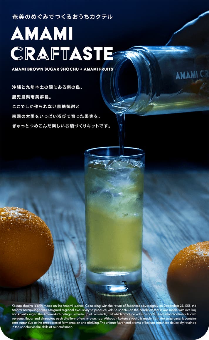 奄美大島にのみ製造が許された伝統の黒糖焼酎と、島で育った旬のフルーツを丁寧にドライ加工した素材を組み合わせ、自宅で手軽に「自分だけのクラフトリキュール」を漬け込む体験を提供するキットを新開発。