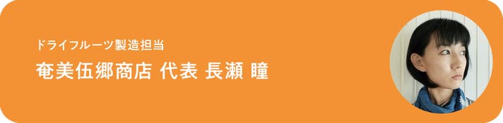 黒糖焼酎やドライフルーツ作りはもちろん、レシピ開発や梱包発送にいたるまで、すべてを奄美で行なうことにこだわりました。「AMAMI CRAFTASTE」を通じて、奄美の人々が大切にしてきた文化や想いをもっと広く、日本中、そして世界にも届けたいと思っています。