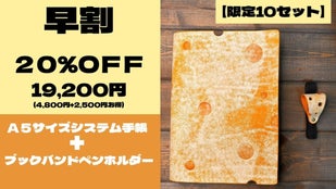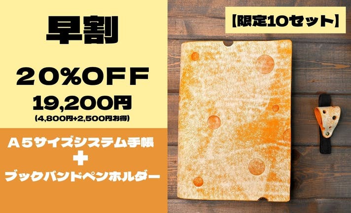 ・A5サイズ革チーズのシステム手帳 × 1点[一般販売予定価格 24,000円の20%OFF]+ブックバンドペンホルダー(2,500円相当)