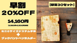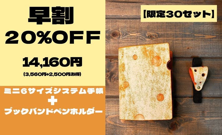 ・ミニ6サイズ革チーズのシステム手帳× 1点[一般販売予定価格 17,700円の20%OFF]+ブックバンドペンホルダー(2,500円相当)