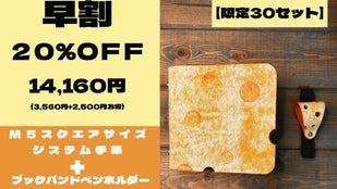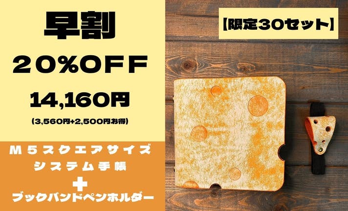 ・M5スクエアサイズ革チーズのシステム手帳× 1点[一般販売予定価格 17,700円の20%OFF]+ブックバンドペンホルダー(2,500円相当)
