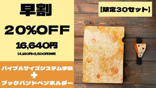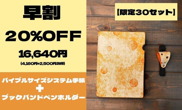 ・バイブルサイズ革チーズのシステム手帳× 1点[一般販売予定価格 20,800円の20%OFF]+ブックバンドペンホルダー(2,500円相当)